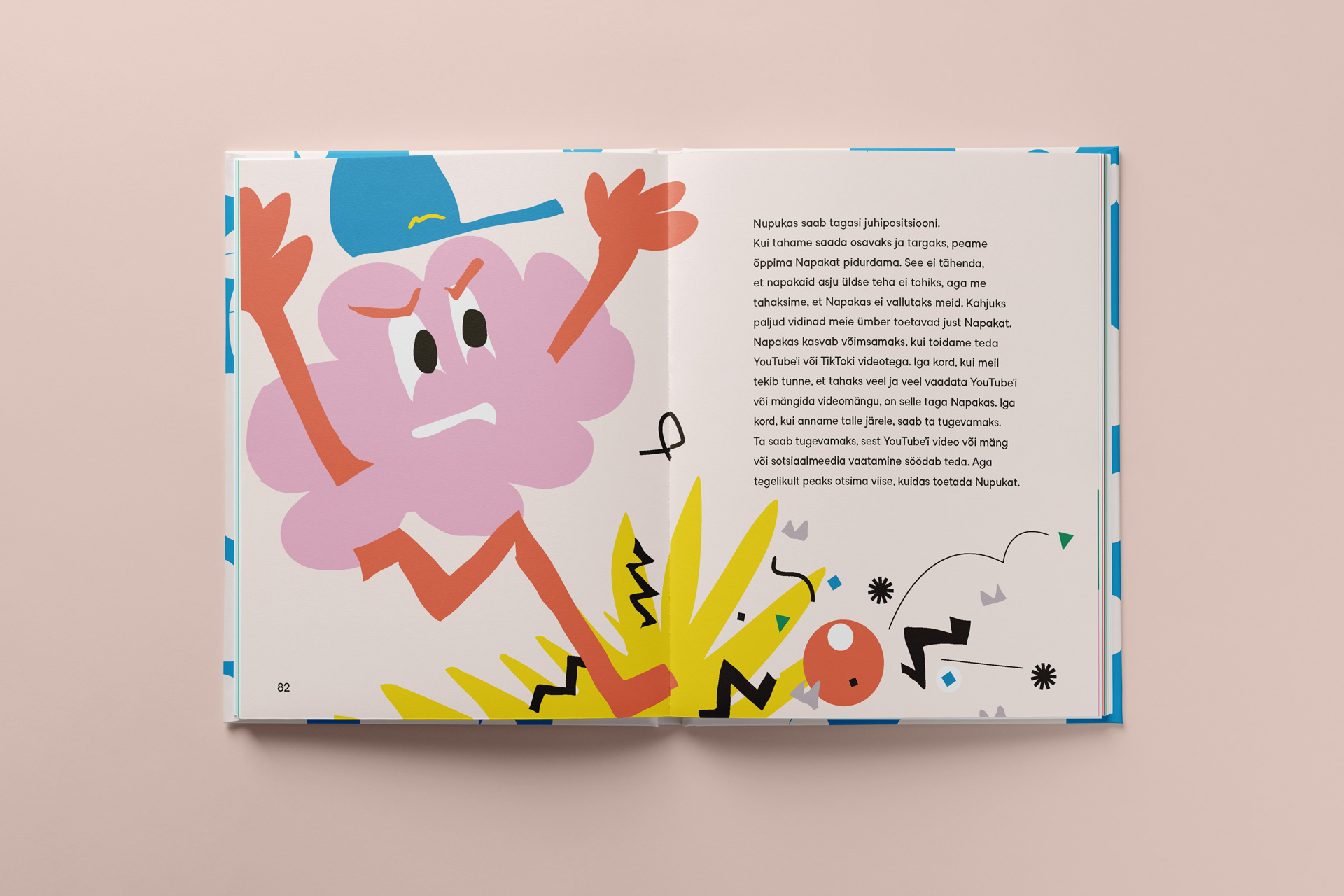 Visual identity and illustrations for an exhibition on well-being, mental health, and balance.